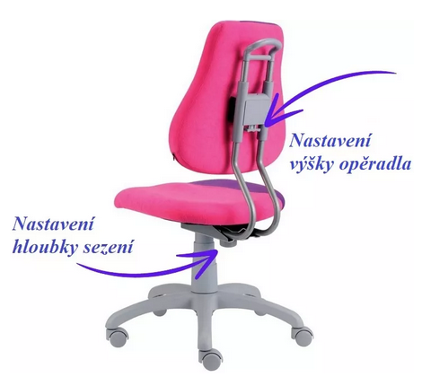 - Nastavení hloubky sedu: otočný šroub pod sedákem – posunete celé opěradlo dopředu/dozadu tak, aby přední hrana sedu nezasahovala do podkolení a zůstala 2–4 cm mezera.