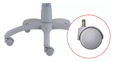 Standard: plastová kolečka průměr 50 mm (čep 11 mm) na koberce.