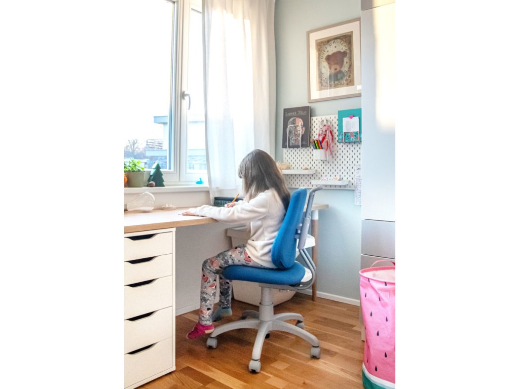 Dětský pokoj a domácí učení: úkoly, čtení, kreslení, hudební příprava.