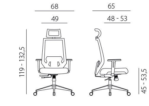 - Kompletní ergonomie bez kompromisů: nastavitelný sedák do hloubky, výškově posuvný opěrák, nastavitelná bederní opora, nastavitelný záhlavník a polohovatelné područky.