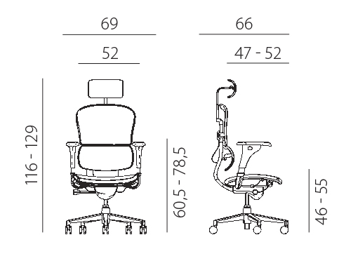 - Přesné nastavení na vaši postavu: hloubkově stavitelný sedák, výškově stavitelný opěrák (3 polohy), nastavitelný tlak v bederní oblasti, výškově i úhlově stavitelná hlavová opěrka.