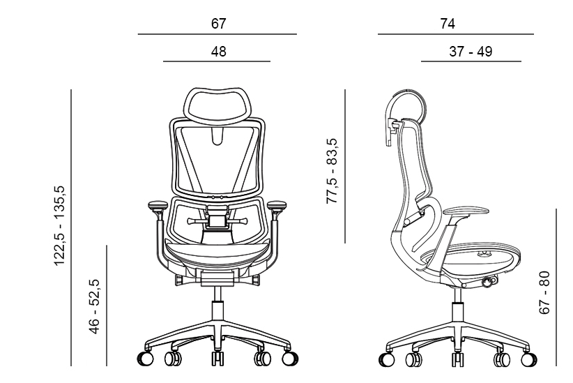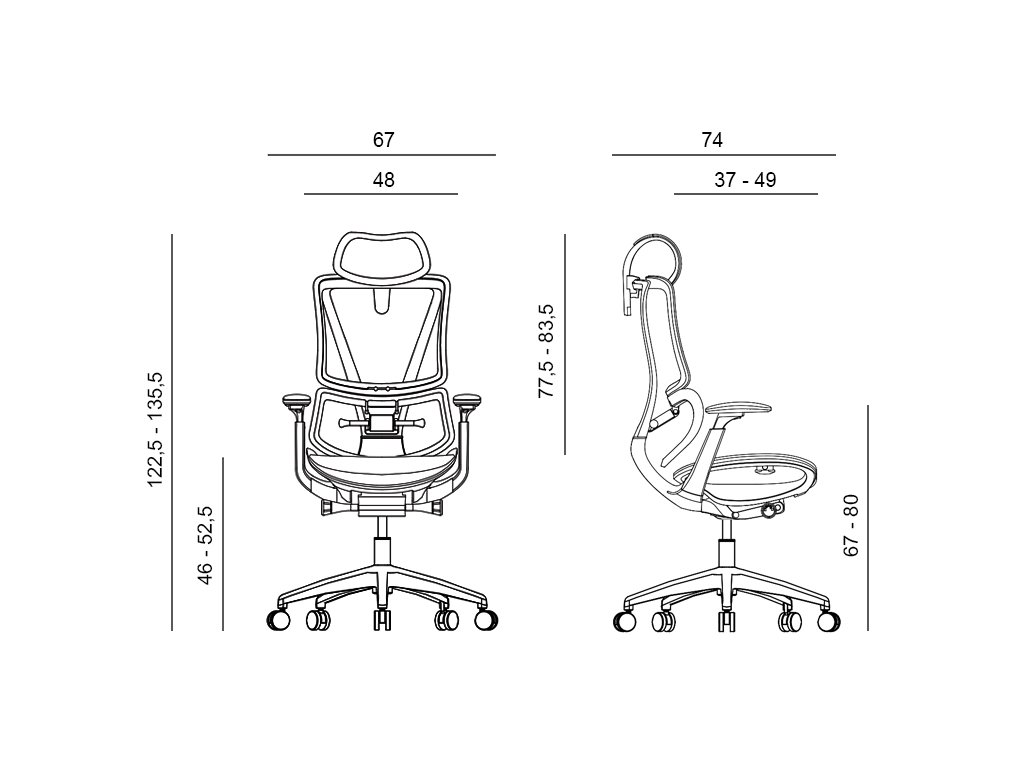 - Synchronní mechanika: sedák a opěrák se pohybují společně, aby kopírovaly vaše záda a podporovaly dynamické sezení. Když najdete pro sebe ideální polohu, jednoduše ji zablokujete (4 aretační pozice).