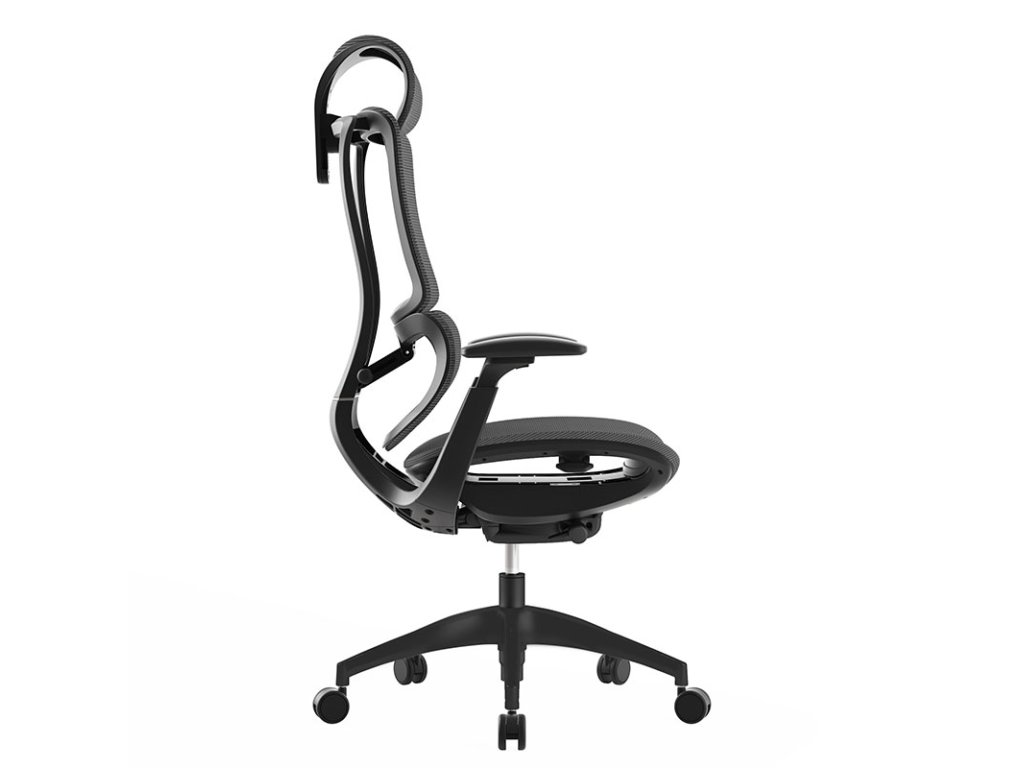 Vzdušnost od hlavy až k patě: síťovina na sedáku, opěráku i opěrce hlavy. Lepší termoregulace, méně pocení, více soustředění.