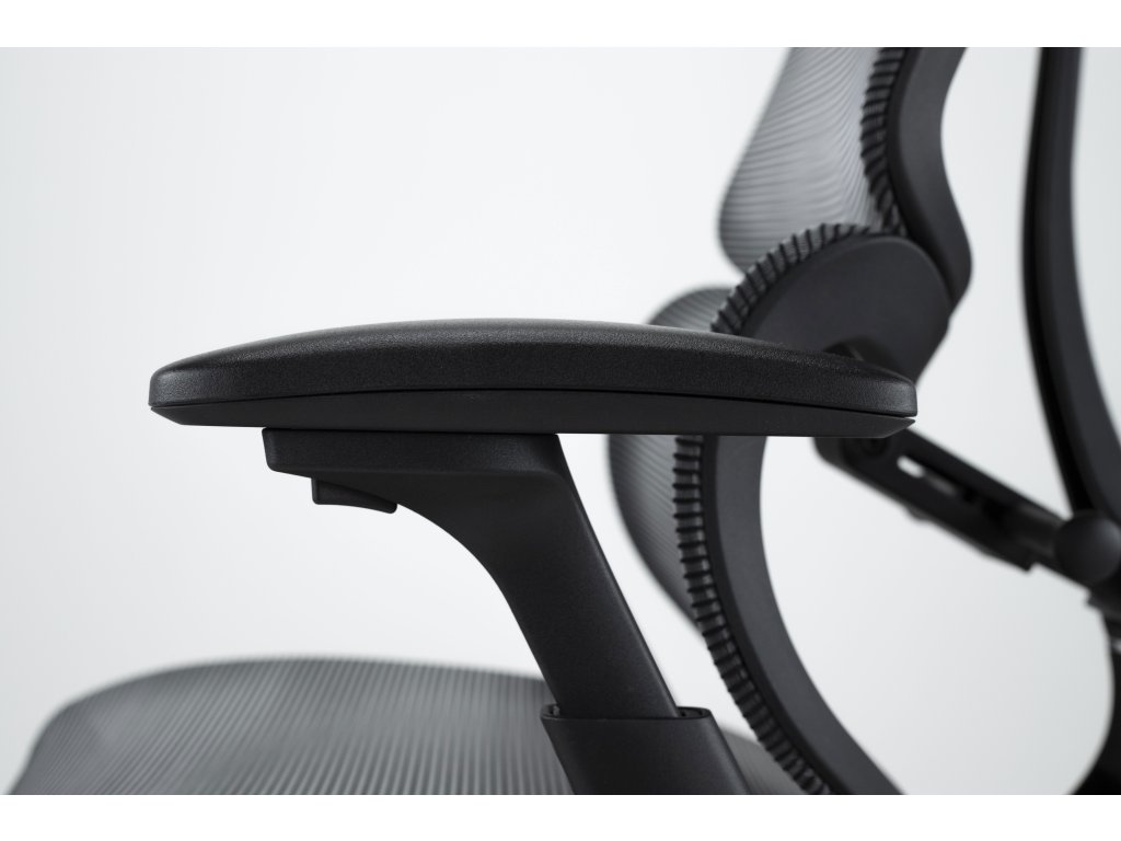 4D područky pro maximální oporu paží: výška, hloubka, šířka i natočení – měkčená dotyková plocha a plynulé sladění s opěradlem.