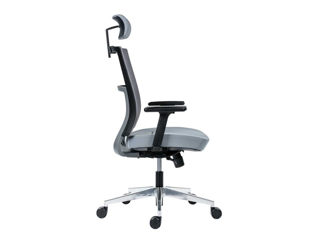 ANTARES kancelářská židle NEXT PDH ALU šedá je symbolem moderní ergonomie a funkčního designu pro náročné uživatele, kteří stráví u počítače až 8 hodin denně. Díky své synchronní mechanice, nastavitelnému záhlavníku a bederní opoře poskytuje tato židle optimální podporu pro zdravé držení těla a flexibilitu, zatímco leštěný hliníkový kříž zajišťuje stabilitu a stylový vzhled. Reprezentuje ideální volbu pro každého, kdo vyžaduje kvalitní materiály, promyšlené detaily a individuální přizpůsobení pro dlohodobé pohodlí a výkon.