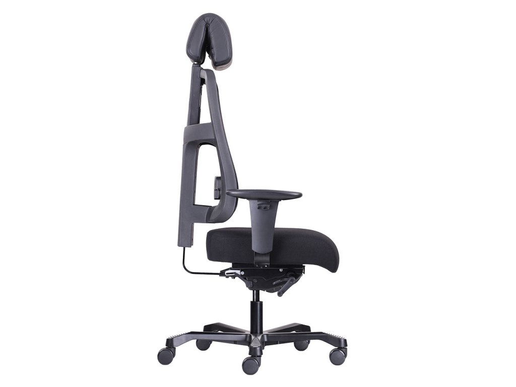 - Přesná ergonomie pro každý den: extra vysoký opěrák se síťovanou zadní částí pro odvod tepla, výškově stavitelný záhlavník z hovězí úsně, stavitelná bederní opora a posuv sedáku pro ideální oporu těla.