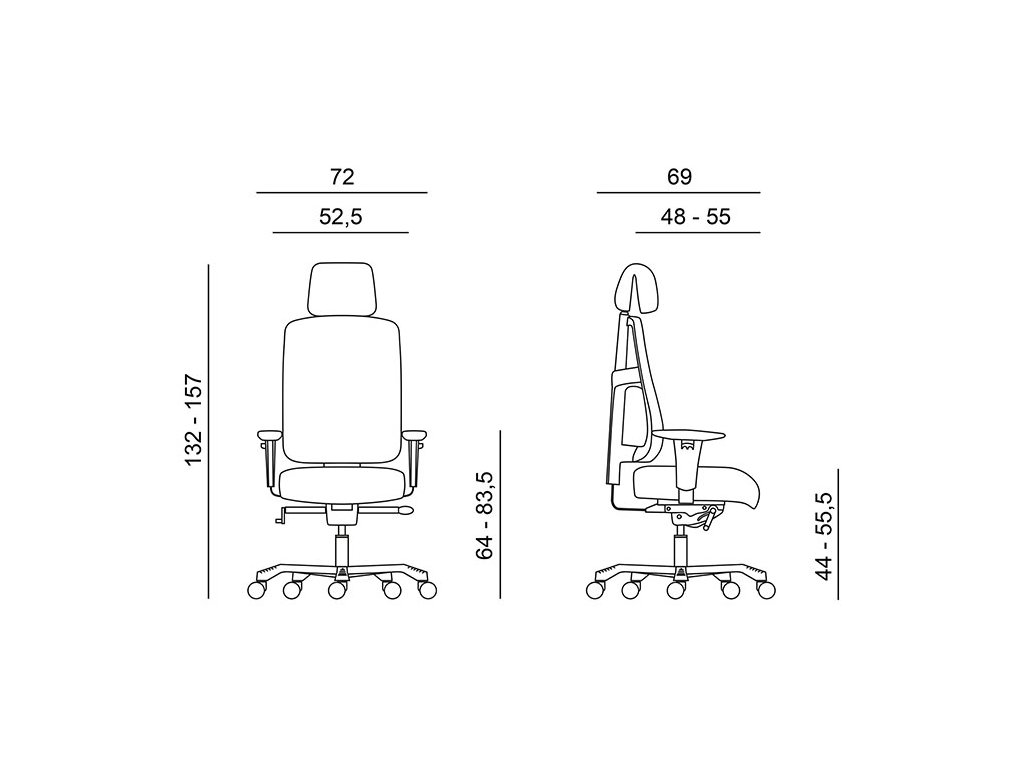 - Výška sedu: 44–55 cm (plynový píst Class 4 Heavy Duty).