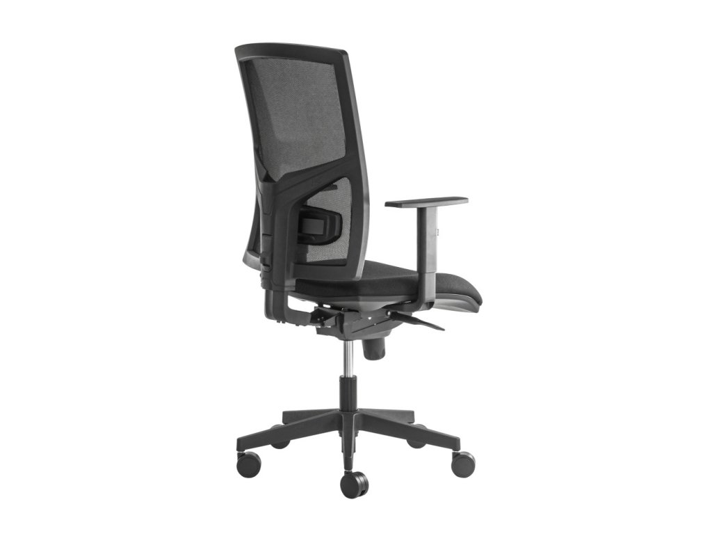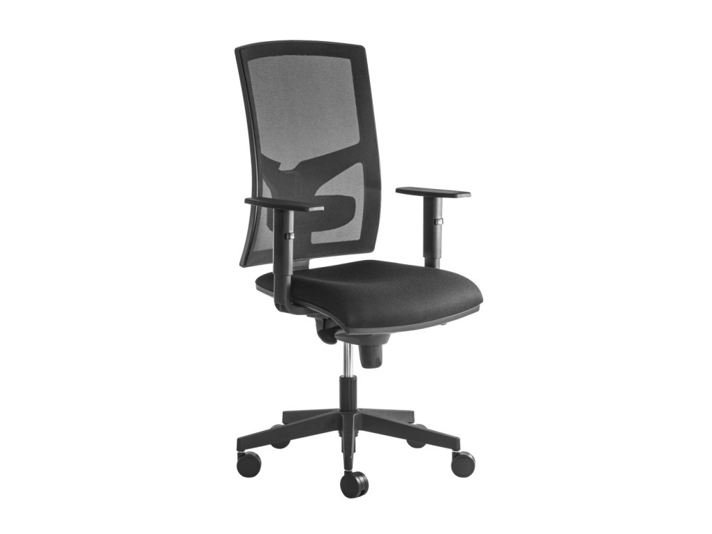 - Opěrák: vysoký, síťovaný, výškově stavitelný s mechanickým zámkem