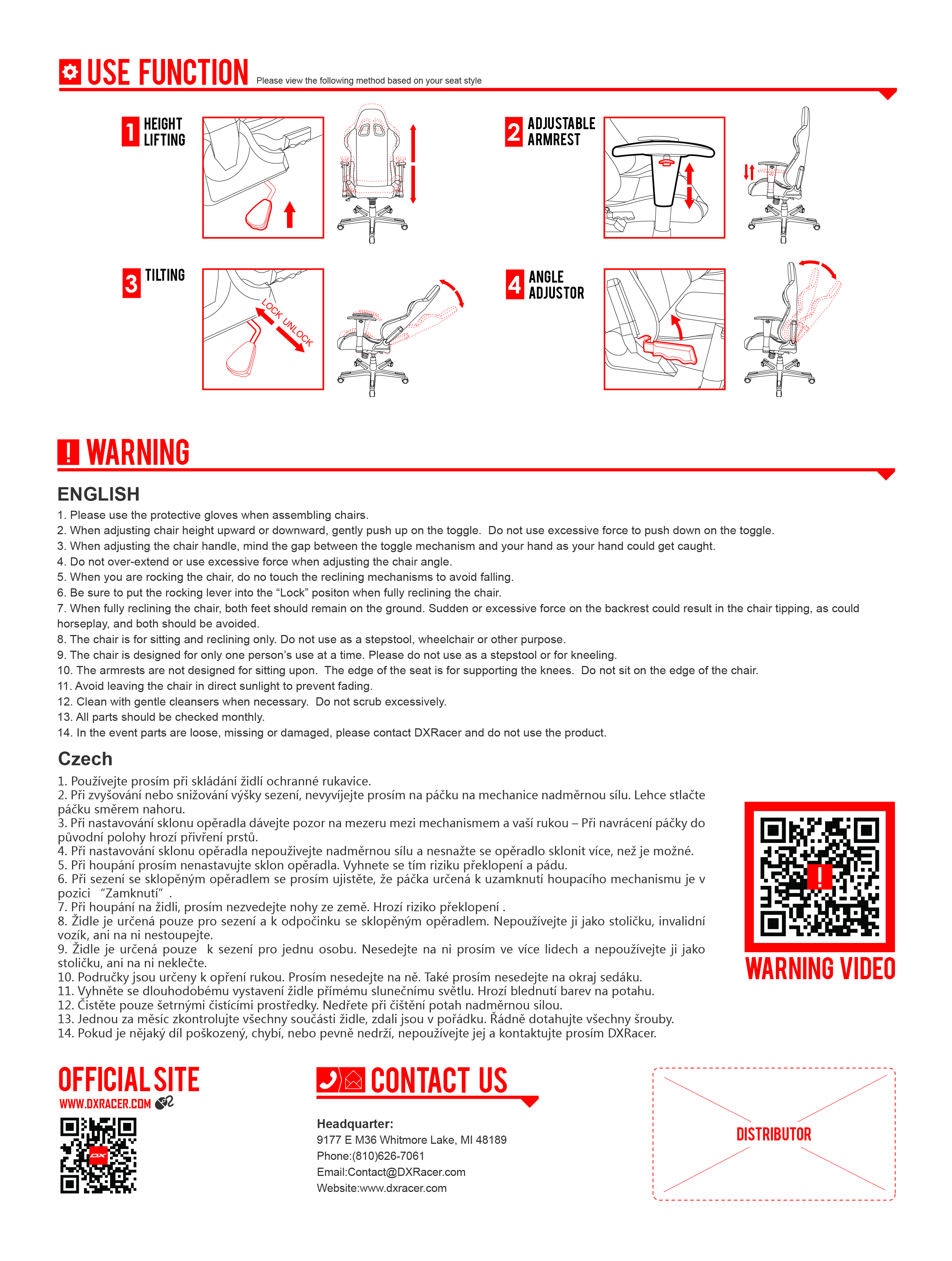 - Oficiální distribuce pro ČR: evropské rozměry, originální díly DXRacer, jistota pravosti.