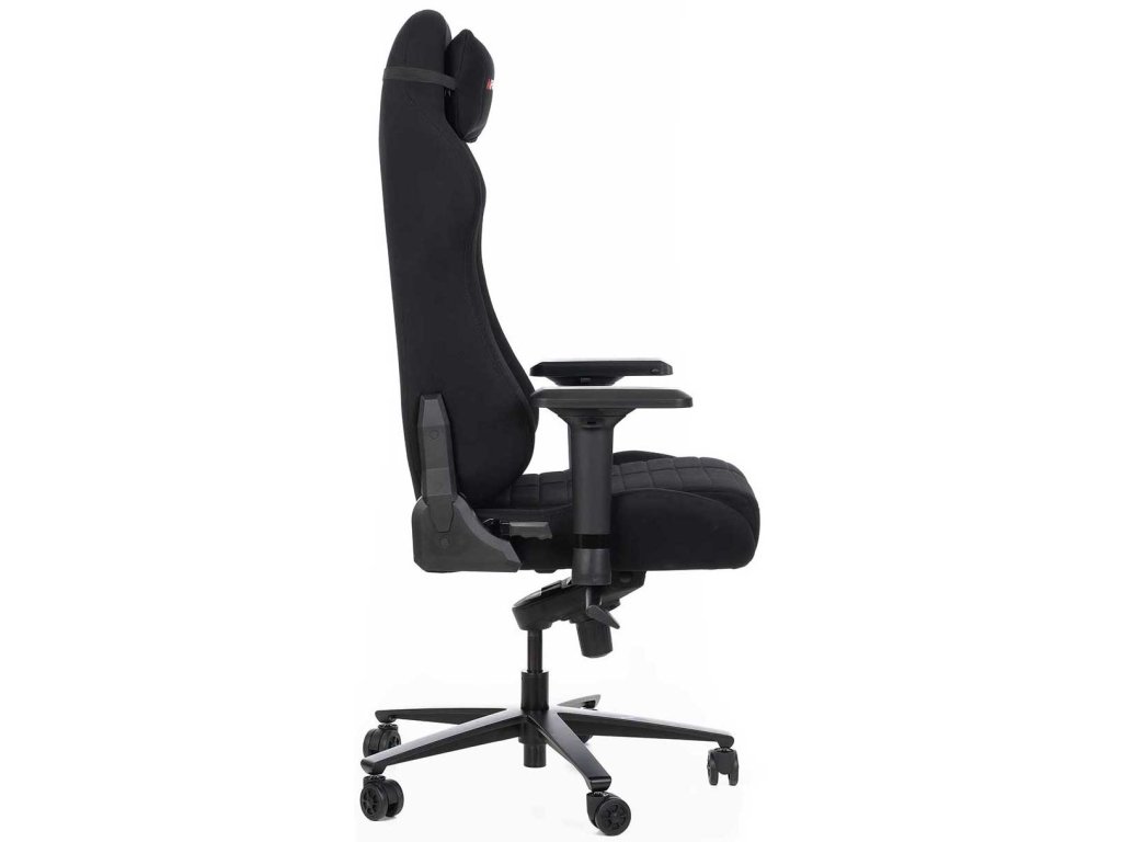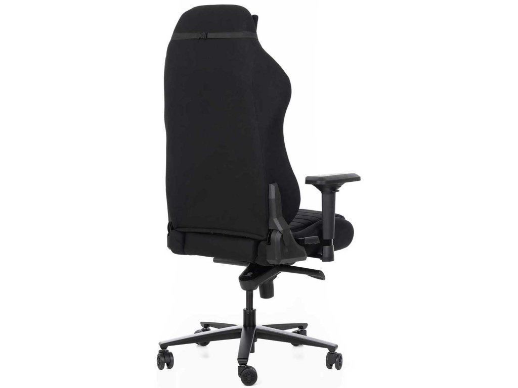 Herní židle MRacer látková, černá, pro postavy 160-185 cm, nosnost 120 kg, houpací mechanika s aretací v 5 polohách, 4D područky