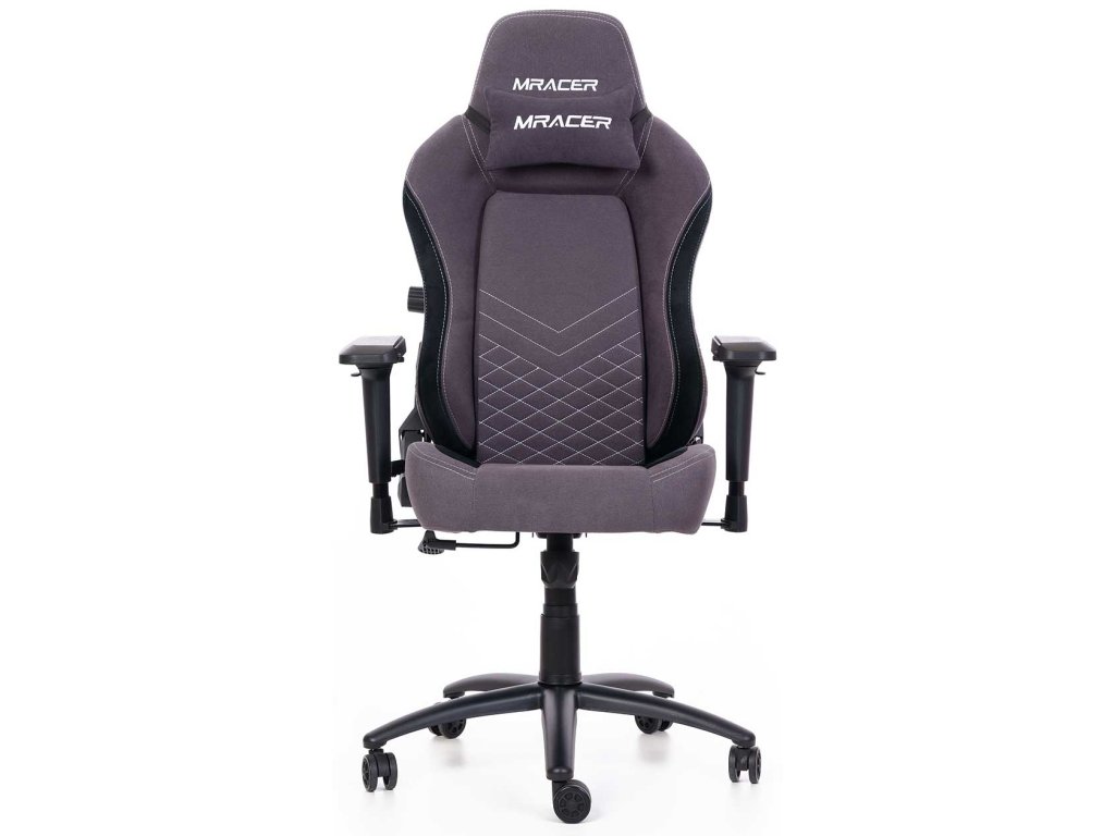 Herní židle MRacer látková, šedá, pro postavy 155-185 cm, nosnost 120 kg, houpací TILT mechanika, 4D područky.