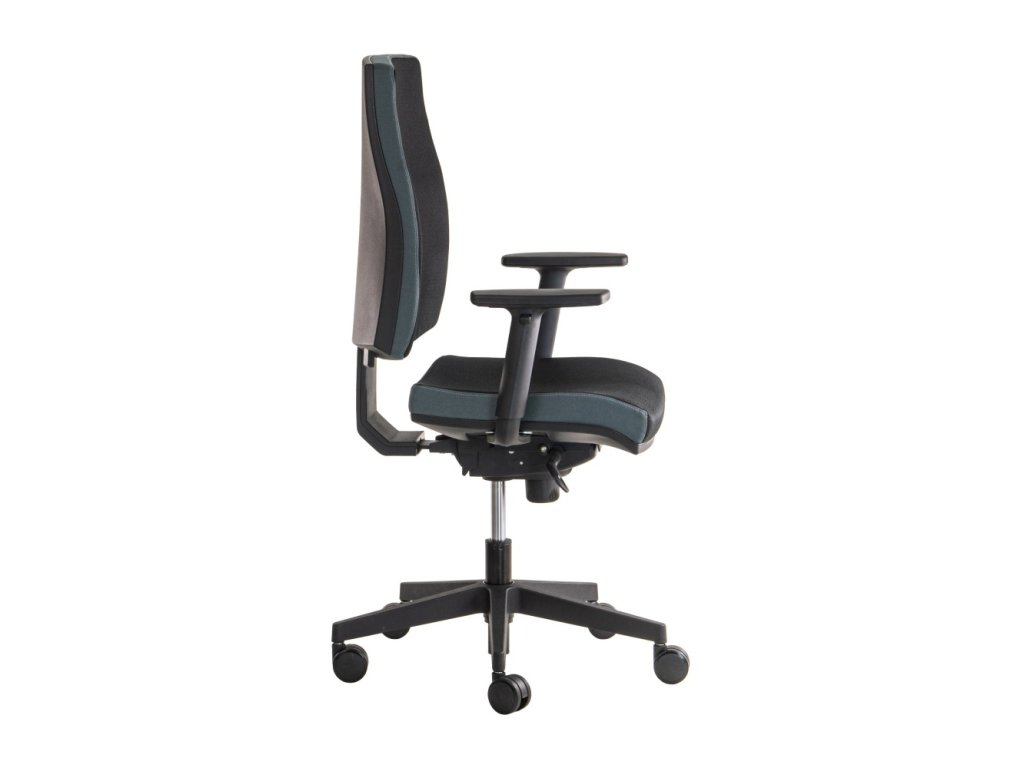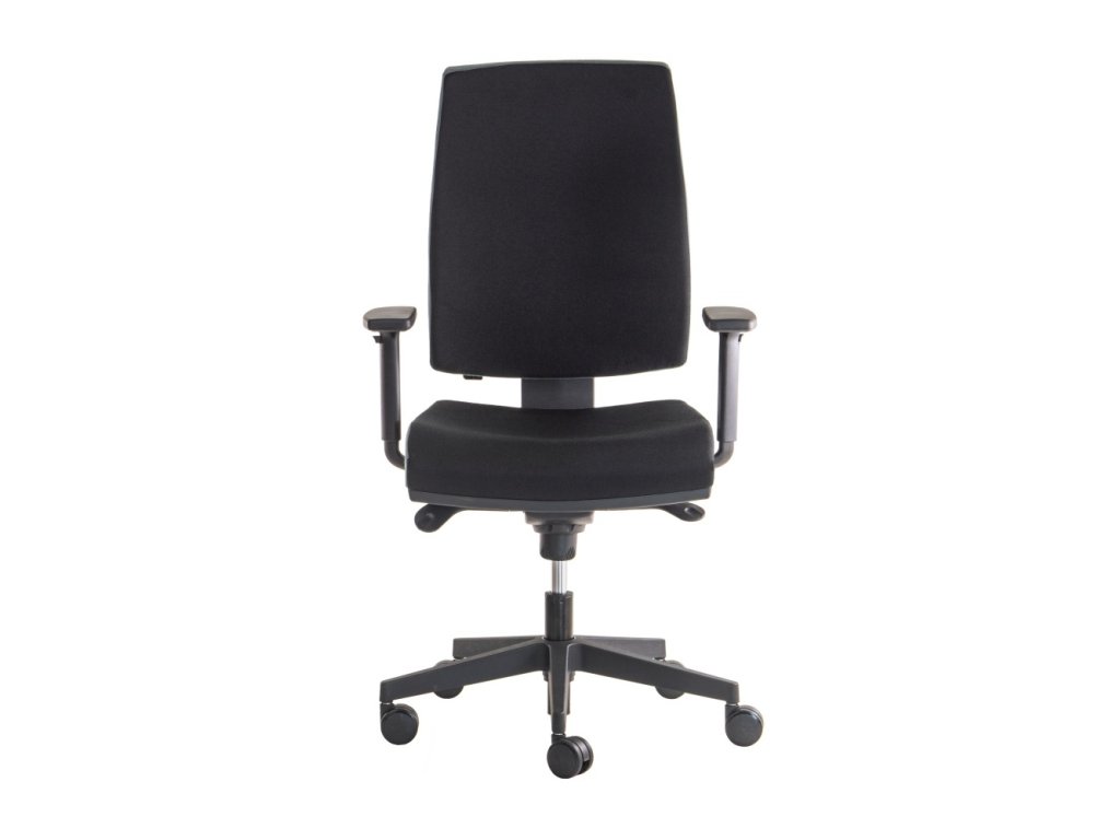 Job je elegantní kancelářská židle pro každodenní práci s precizně zpracovaným, ergonomicky tvarovaným čalouněním. Sedák i opěrák tvoří injektovaná pěna s vysokou hustotou, která dlouhodobě odolává prosezení. O plynulý, zdravý pohyb se stará synchronní mechanika s aretací v pěti polohách a plynulým nastavením síly přítlaku opěradla. Stabilitu zajišťuje odolný nylonový kříž a komfort doplňují výškově nastavitelné područky s měkčeným topem.
