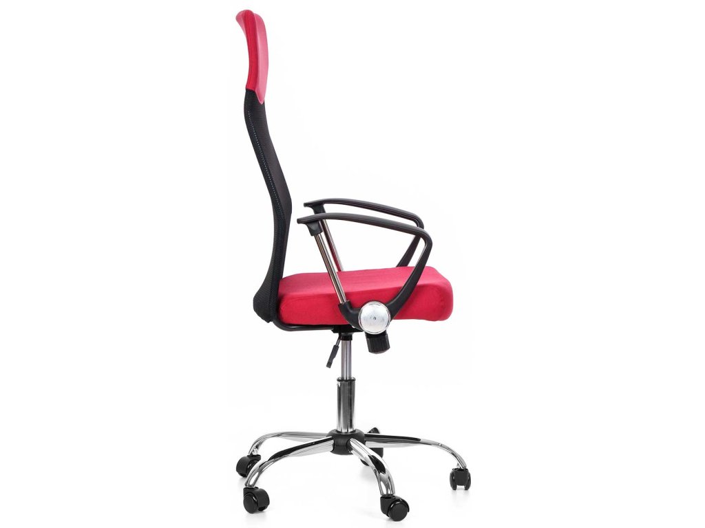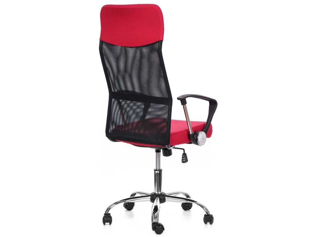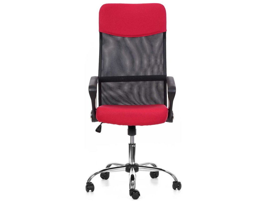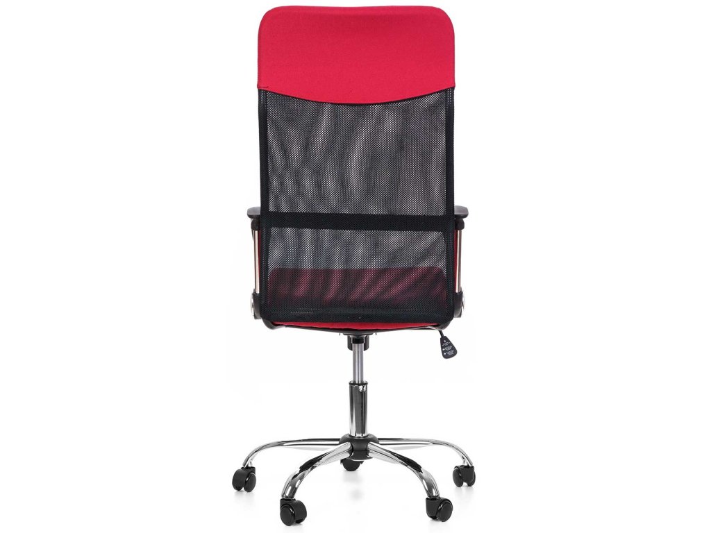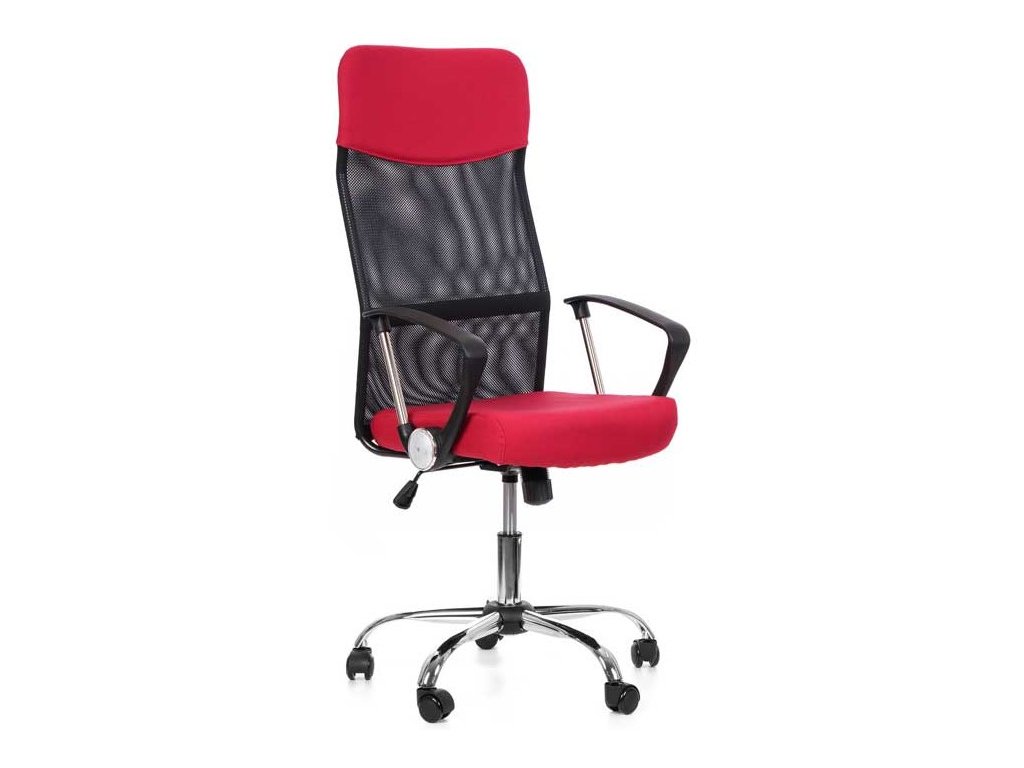 Výškově nastavitelná židle se síťovanou zádovou opěrkou, nosností 120 kg, čalouněným sedákem, pevnými područkami a houpací mechanikou, červená
