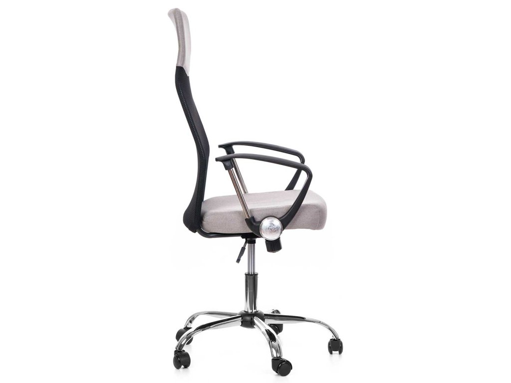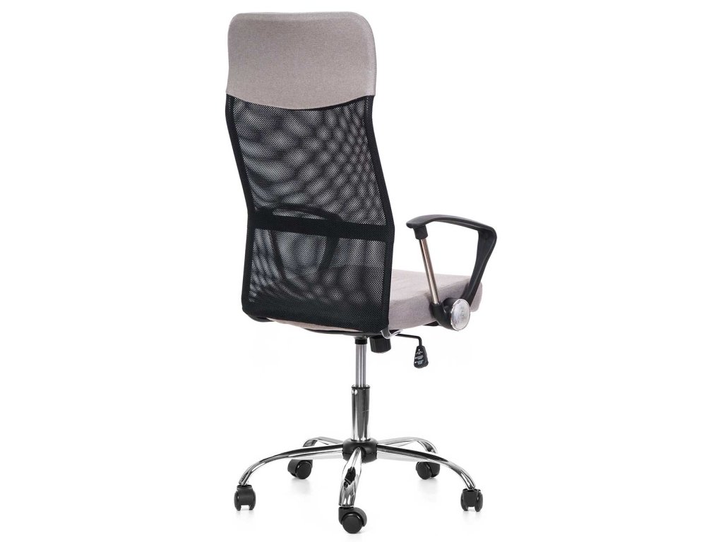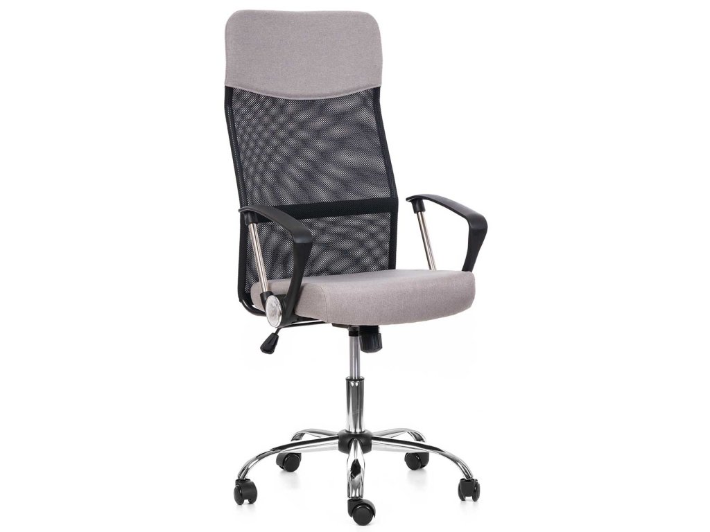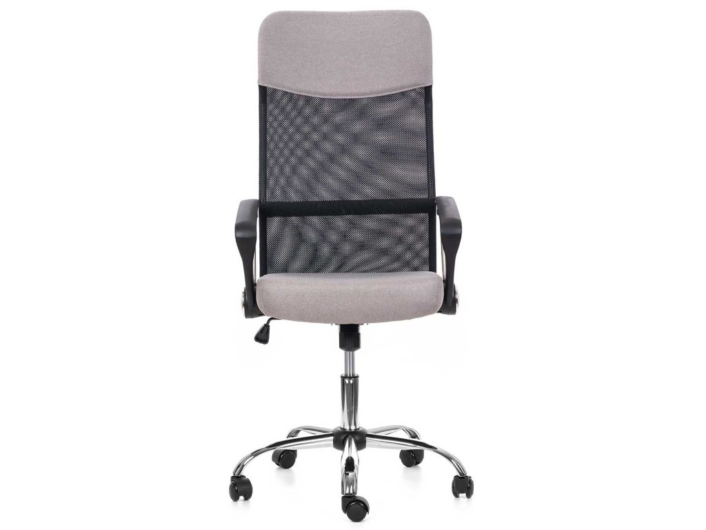 Výškově nastavitelná židle se síťovanou zádovou opěrkou, nosností 120 kg, čalouněným sedákem, pevnými područkami a houpací mechanikou, šedá