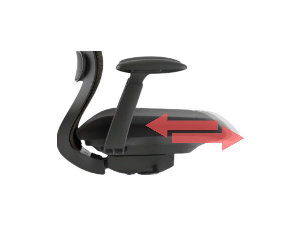 - Posuv sedáku (hloubka sezení): Zvětšuje či zmenšuje sedací plochu podle délky stehen. Skvělé, když se na židli střídá více lidí, nebo potřebujete o pár centimetrů víc prostoru pro komfort kolen.