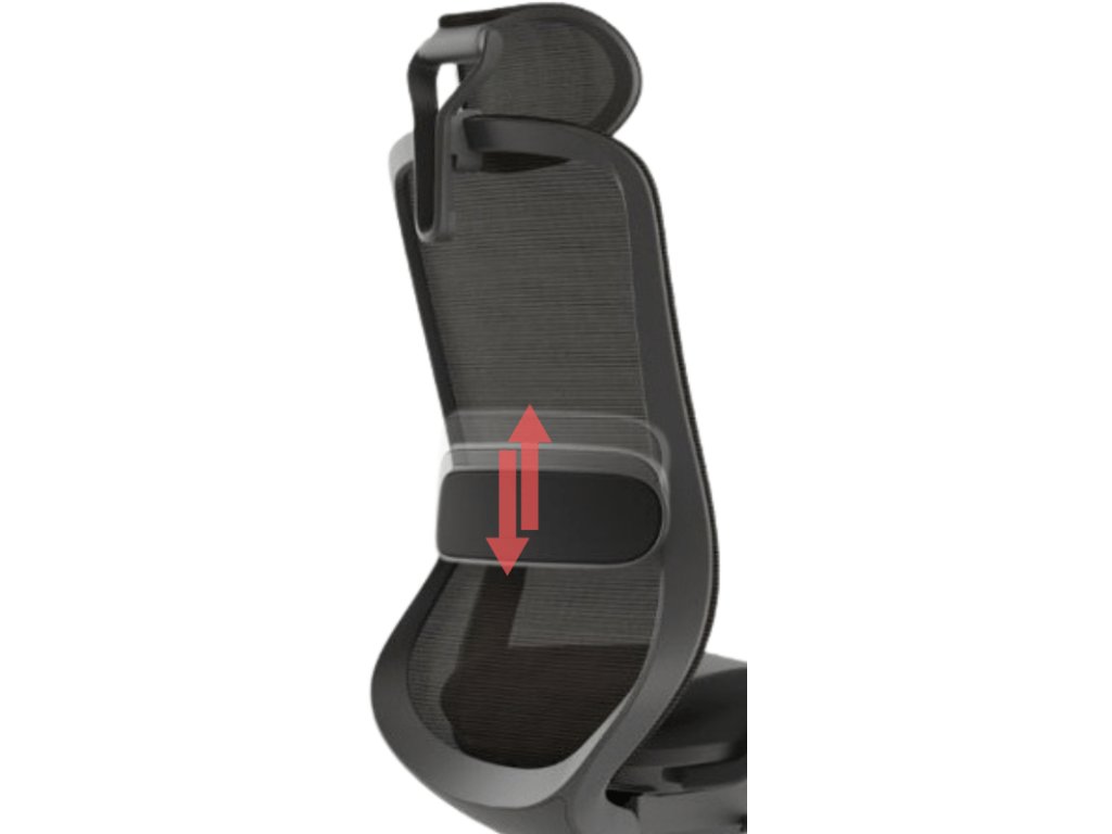 - Bederní opěrka: Výškově nastavitelná opora umožní jemné „vyklenutí“ v bedrech, abyste seděli přirozeně vzpřímeně – bez hrbení a únavy.