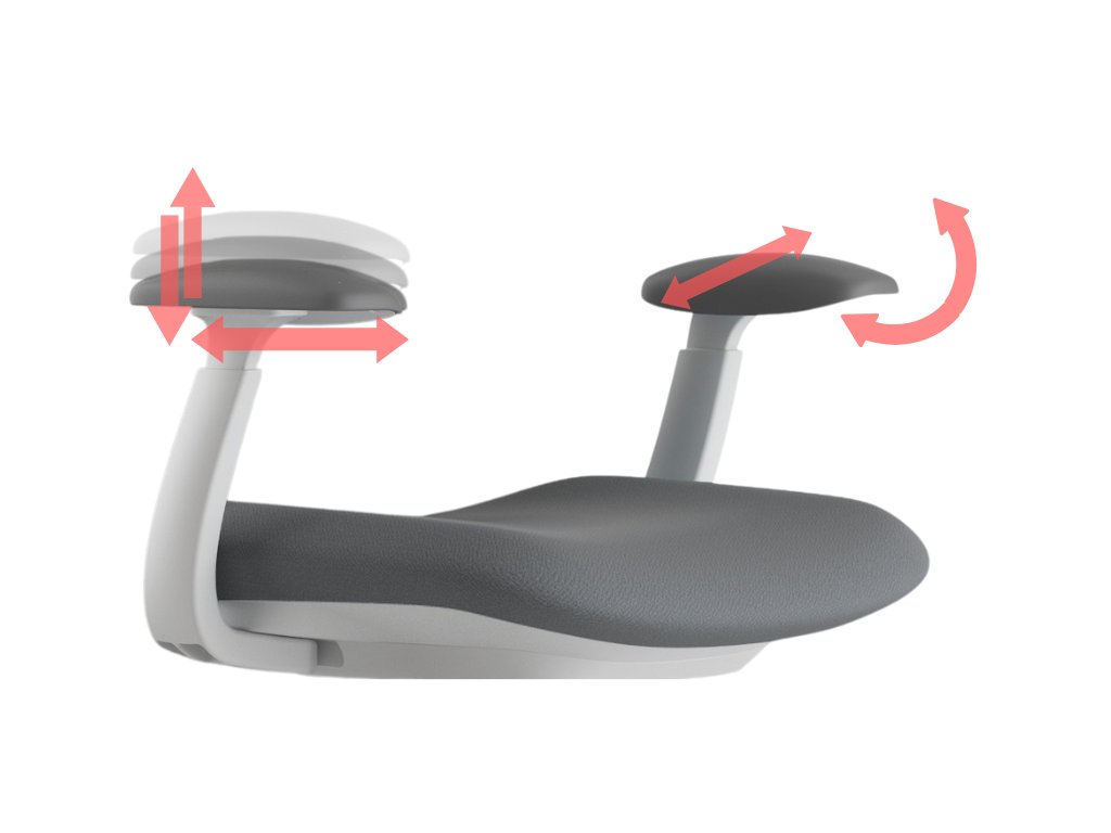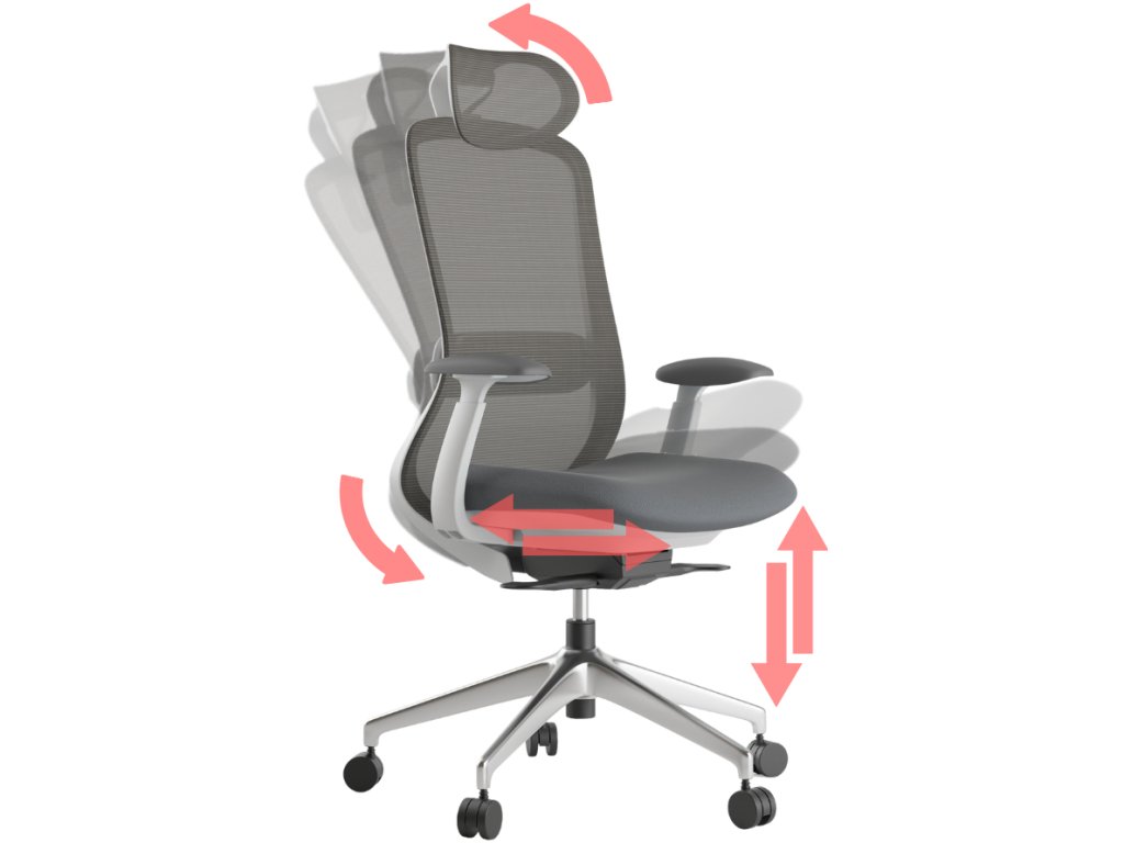 - Přizpůsobí se vám, ne naopak: výškově a hloubkově nastavitelný podhlavník, výškově stavitelná bederní opěrka, 4D područky a posuv sedu o 5,5 cm.