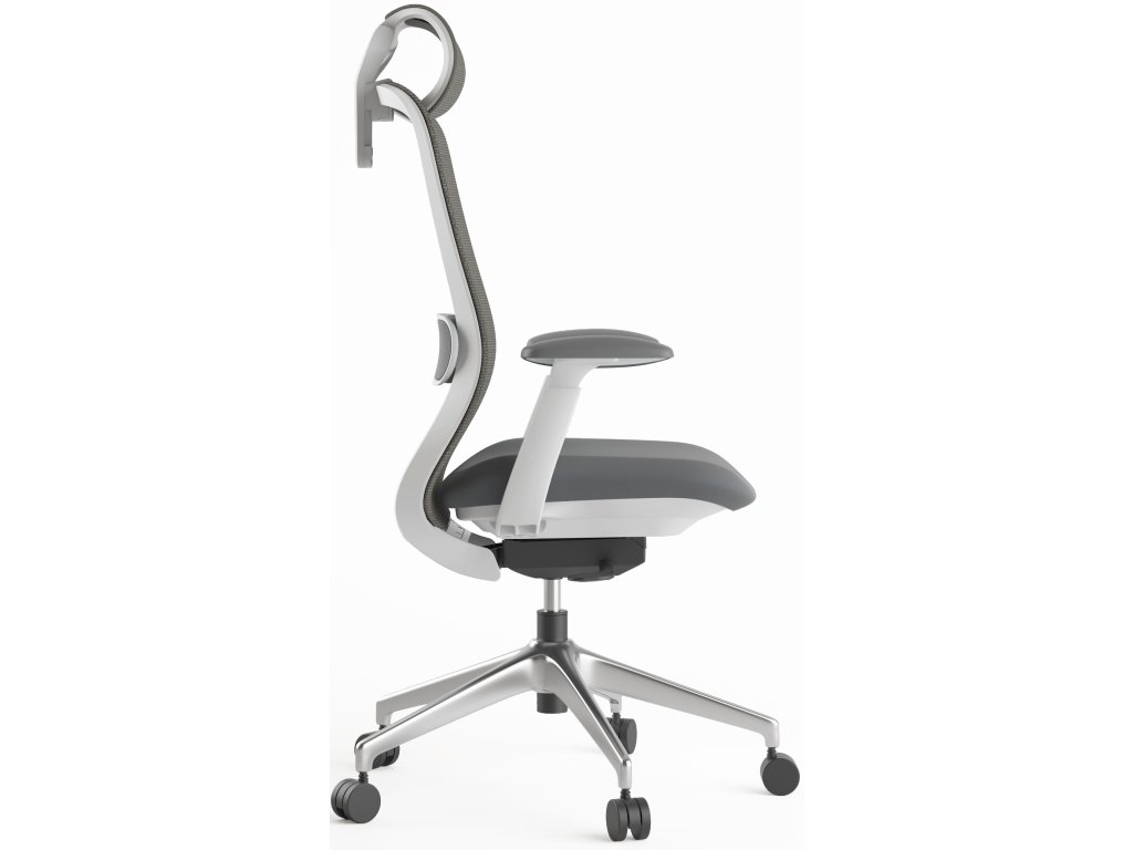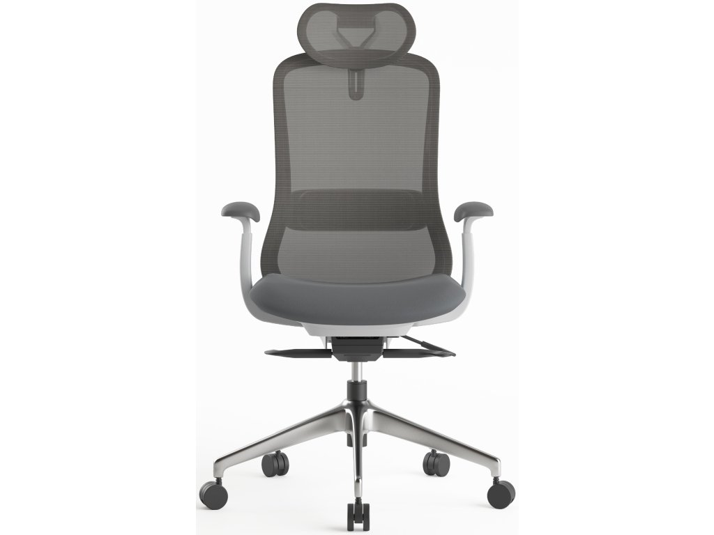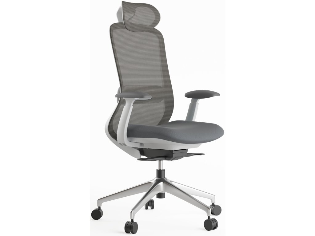 Vynikající židle pro osoby s výškou 155-180 cm, synchronní mechanismus, vhodná pro 8 hodinové sezení osob s nosností do 120 kg, šedý plast, světle šedé čalounění