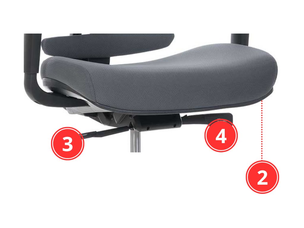 - Hloubka sedu: menší páčkou pod sedákem nastavíte posuv a uvolněním zablokujete v ideální poloze.