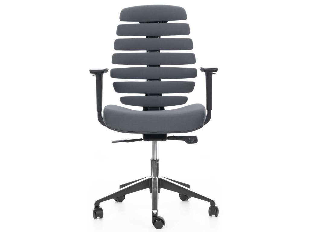 "Kancelářská židle FISH BONES je ideálním spojením inovativního designu a pokročilé ergonomie pro každodenní aktivní sezení. Je vybavena unikátním lamelovým opěrákem, který reaguje na pohyby vašeho těla a podporuje přirozené držení páteře. Díky synchronní mechanice s aretací a 3D područkami si můžete přizpůsobit každý aspekt sezení tak, aby přesně odpovídal vaší postavě a preferencím. Anatomicky tvarovaný sedák z nové pěny zajišťuje rovnoměrnou oporu po celý den.
