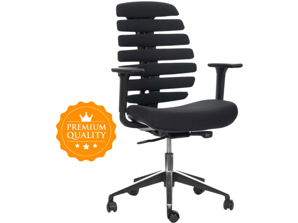 Kancelářská židle FISH BONES černý plast, 26-60 černá, 3D područky – aktivní sezení bez kompromisů, design který nepřehlédnete.