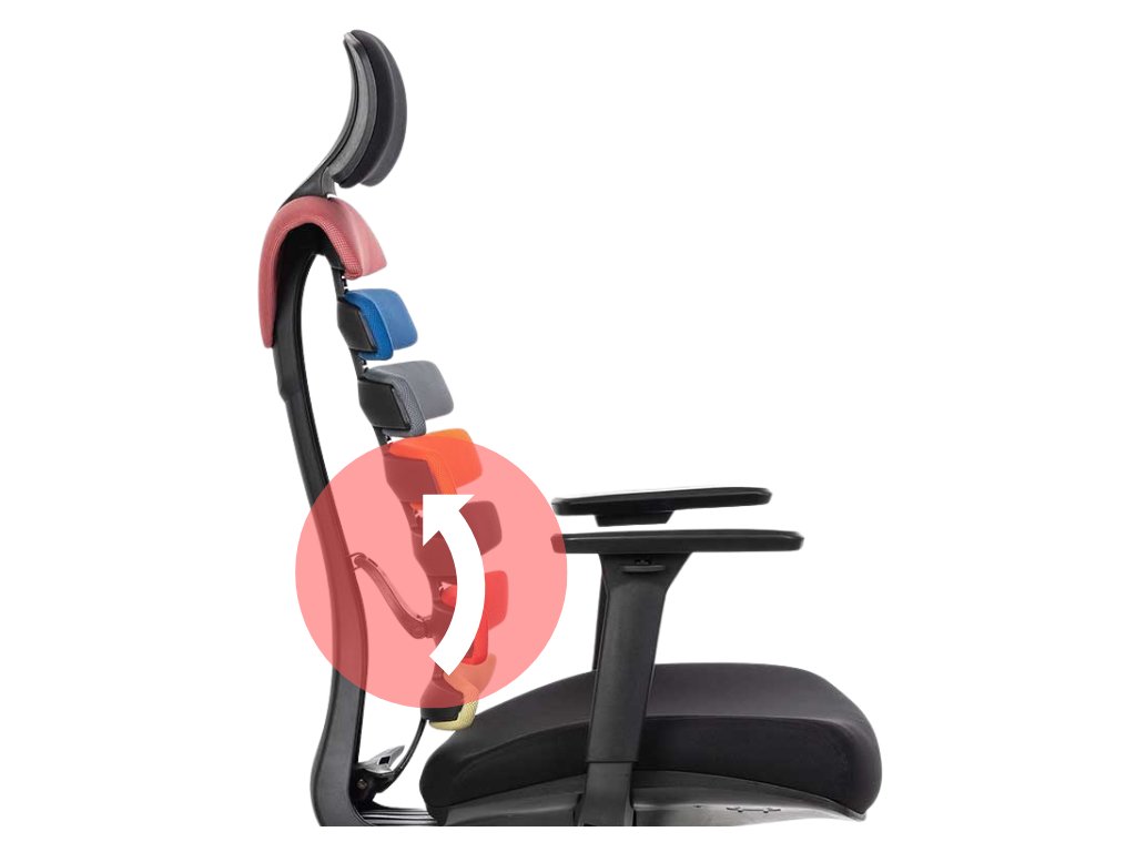 - Bederní opěrka: výškově nastavitelná (3+1 pozice), aby seděla přesně na vaši lordózu.