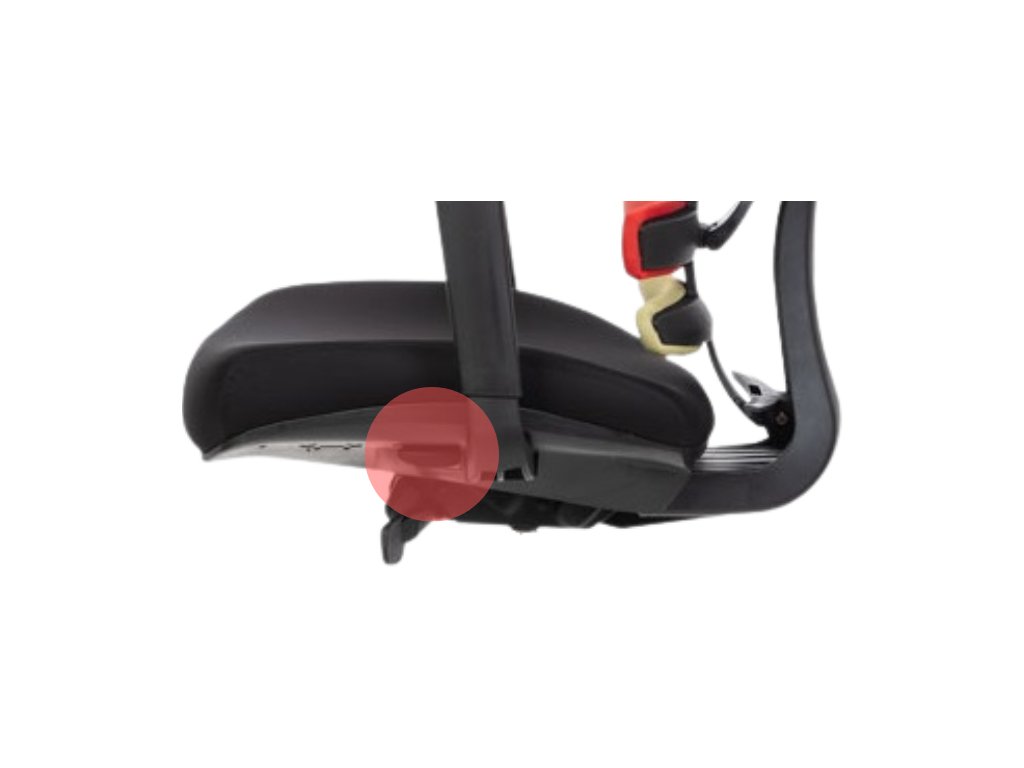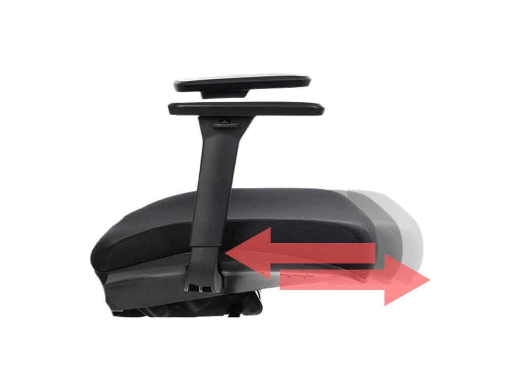 - Hloubka sedu: menší páčkou pod sedákem nastavíte posuv a uvolněním zablokujete v ideální poloze.