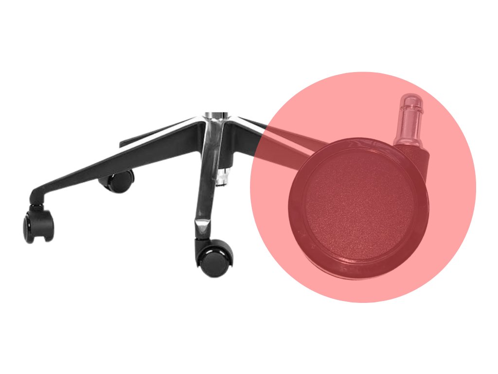 - Kolečka: univerzální, tichý chod na koberci i tvrdých podlahách. Lze nahradit designovými kolečky na tvrdé podlahy nebo kluzáky.