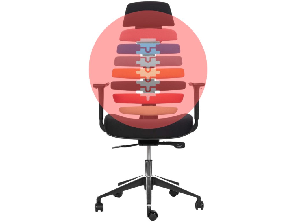 - Aktivní opora zad: pružné, nezávisle výkyvné lamely reagují na každý váš pohyb a zamezí „ztuhlému“ sezení.