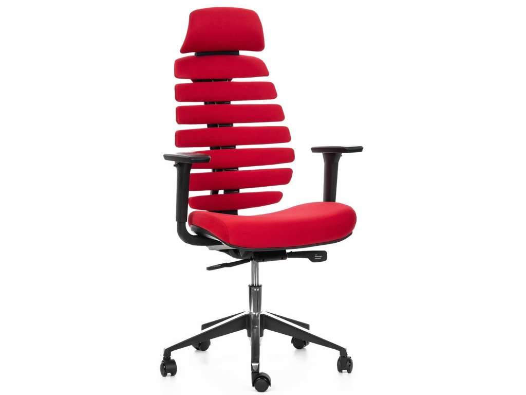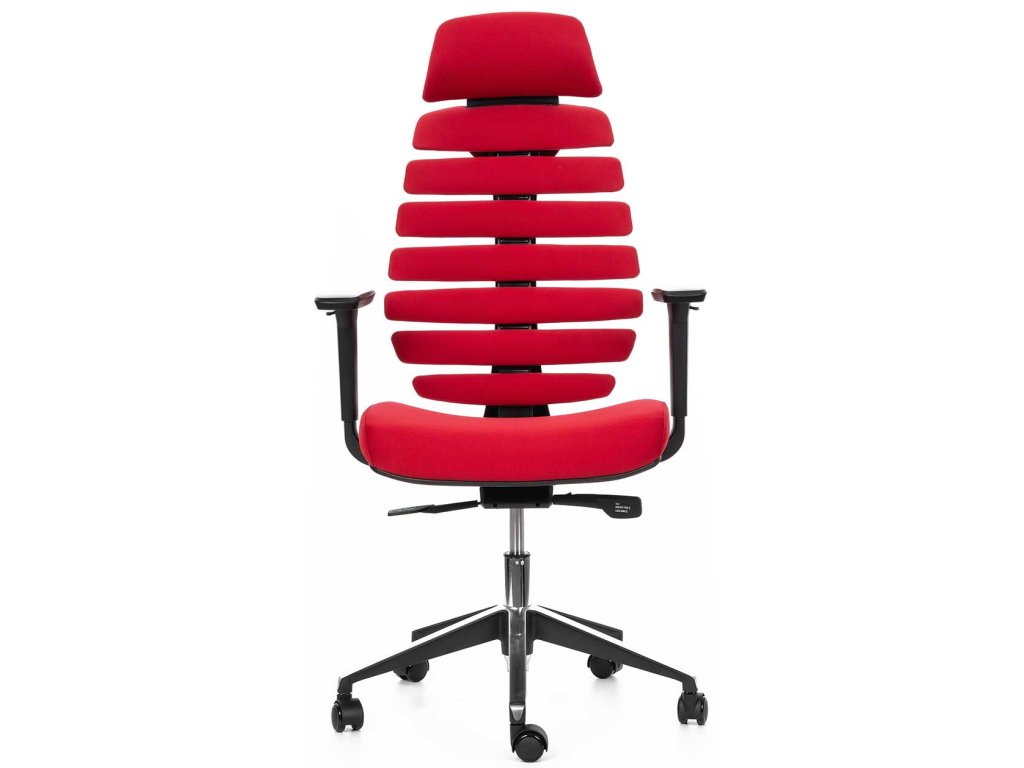 Kancelářská židle FISH BONES PDH, černý plast, 26-68 červená, 3D područky – aktivní sezení bez kompromisů, design který nepřehlédnete.