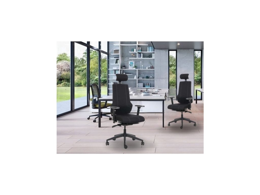 Vynikající židle pro osoby s výškou 155-200 cm, synchronní mechanismus, vhodná pro 8-12 hodinové sezení osob s nosností do 120 kg, černá, celočalouněná