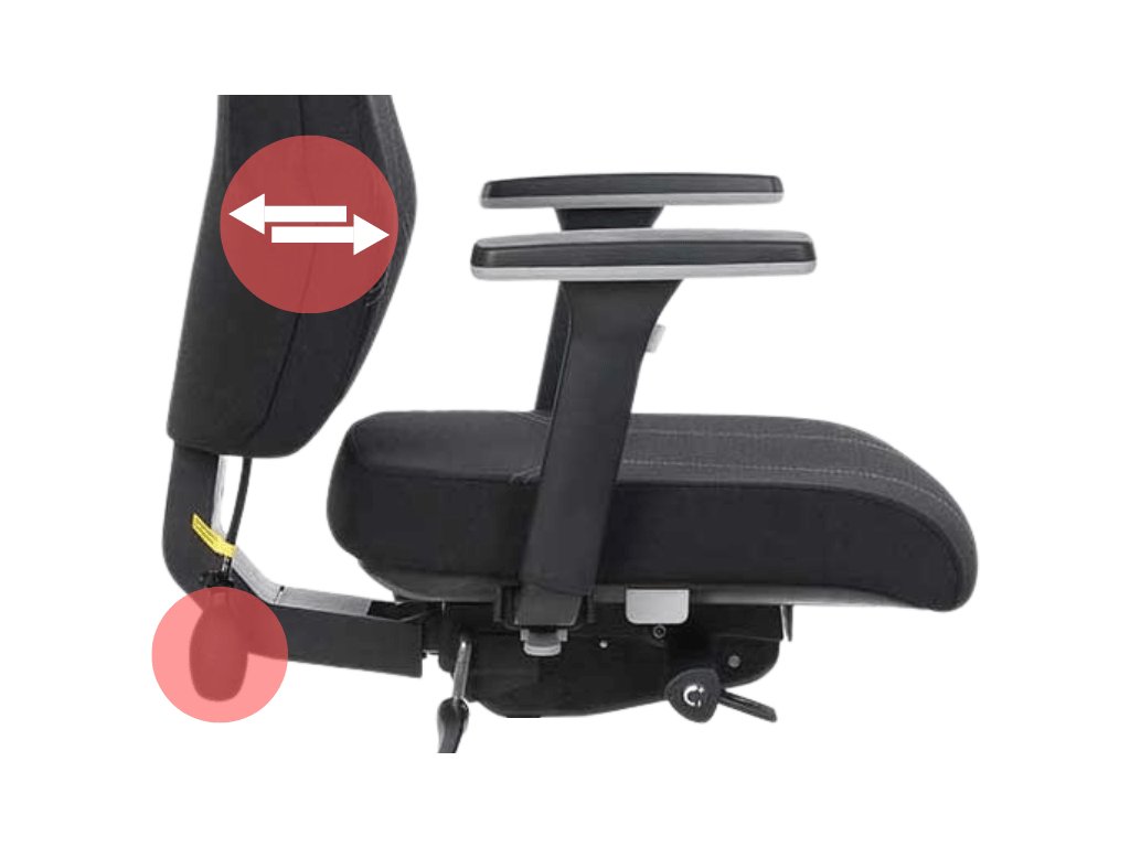- Bederní opěrka s přífukem: jednoduše zvětšíte nebo zmenšíte bederní podporu dle svých zad. Vhodné pro sdílené pracoviště i různé typy postav.