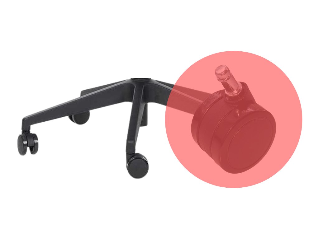Židle stojí na pevném nylonovém kži, který zaručuje stabilitu i dlouhou životnost. Pět univerzálních koleček umožňuje plynulý pohyb po všech typech podlah; průměr koleček je 60 mm, průměr čepu 11 mm.