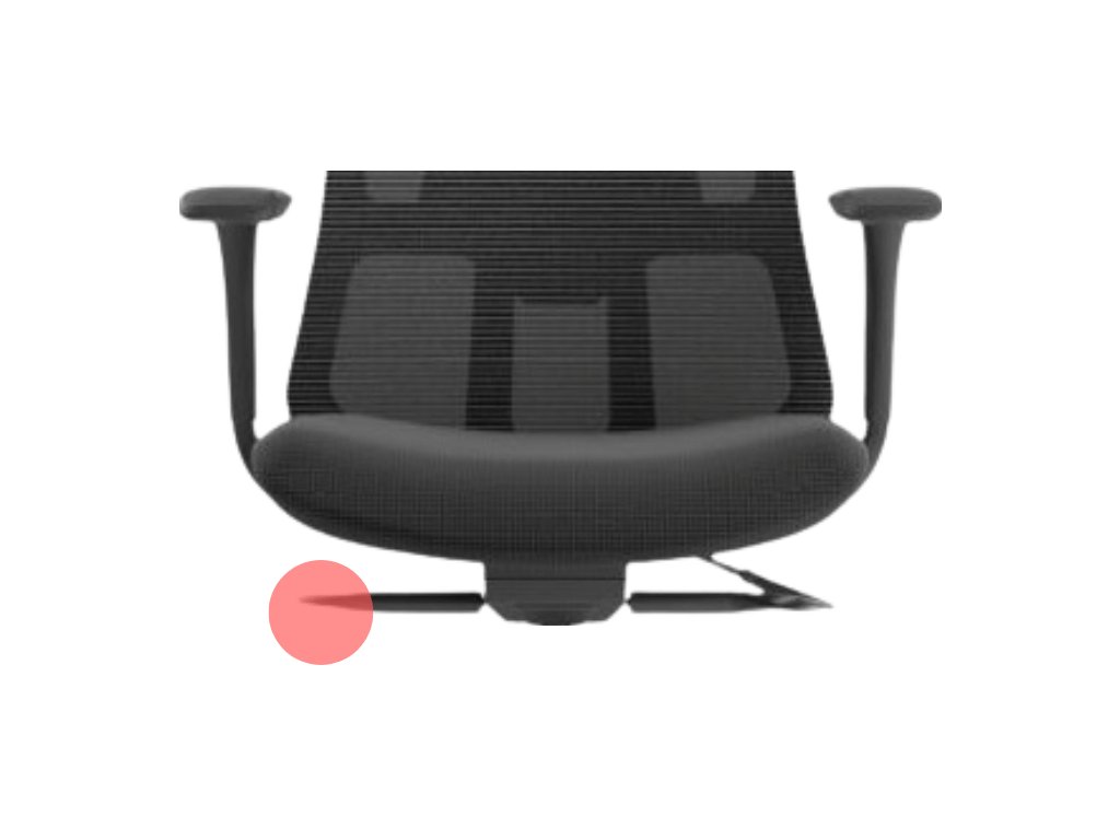 Hloubku sezení nastavíte menší páčkou na levé straně. Vytáhněte páčku a posuňte sedadlo vpřed nebo vzad podle potřeby. Nastavení hloubky je užitečné pro různé výšky postav, zajišťuje pohodlí a umožňuje sdílení židle mezi více uživateli.