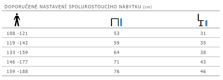 - Ekonomika: jedna židle na mnoho let – od 110 do 180 cm výšky.