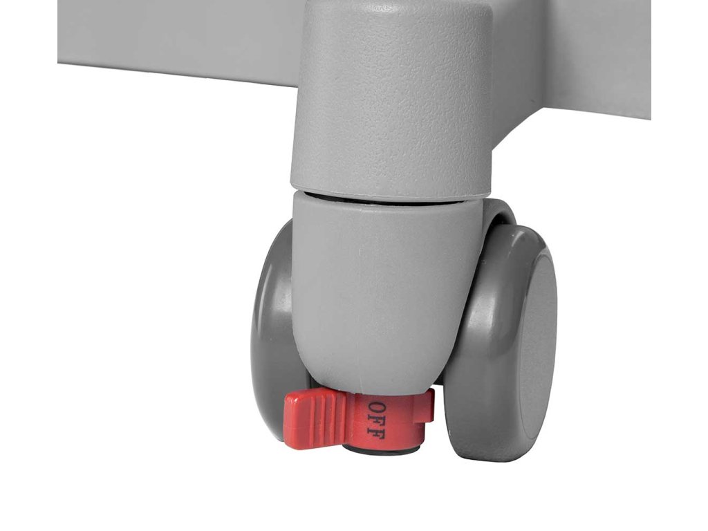 - Bezpečný pohyb i stabilita: univerzální dvoj‑funkční kolečka na všechny typy podlah s přepínáním ON/OFF.