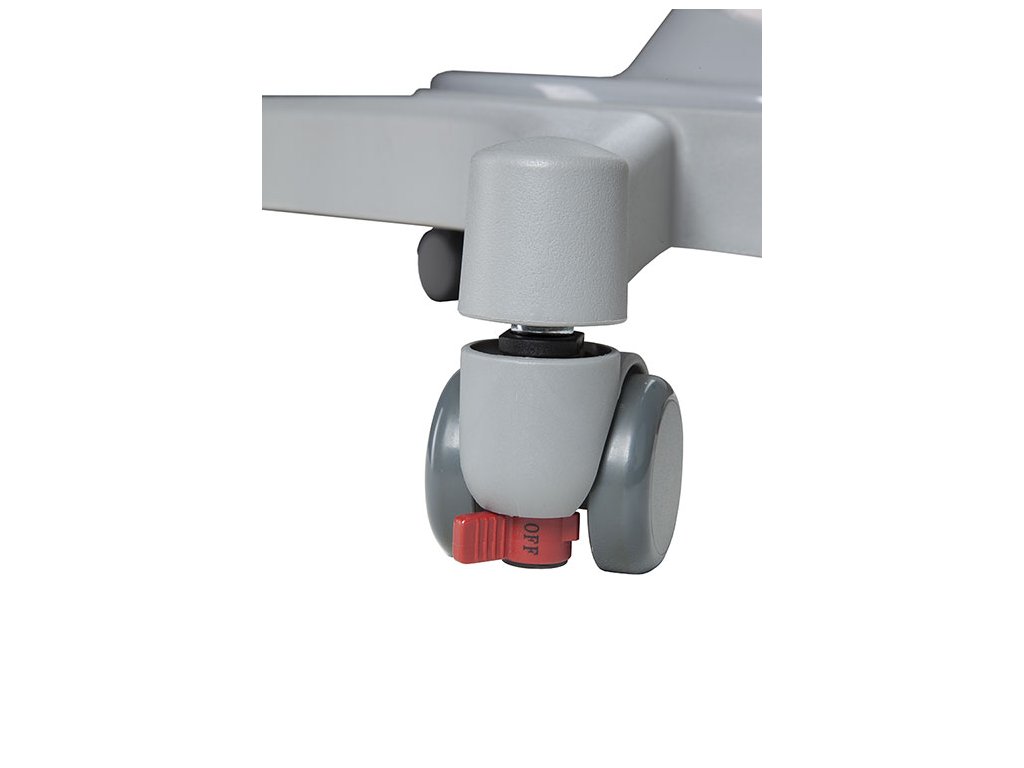 - Bezpečný pohyb i stabilita: univerzální dvoj‑funkční kolečka na všechny typy podlah s přepínáním ON/OFF.