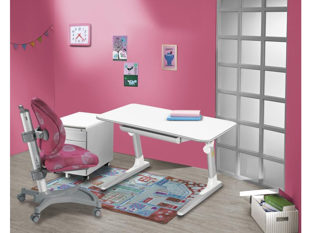 - Čistý, nadčasový vzhled: stříbrná kostra, bílá deska a bílé plastové díly skvěle zapadnou do dětského pokoje i studentského koutku.