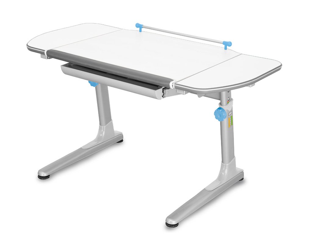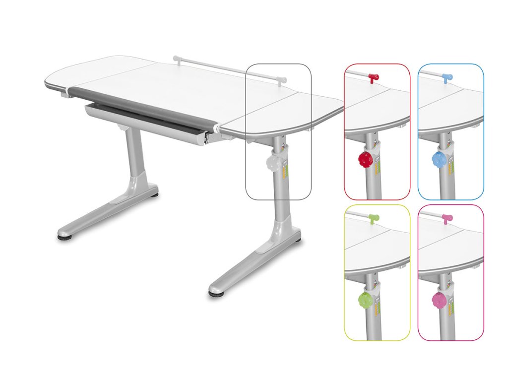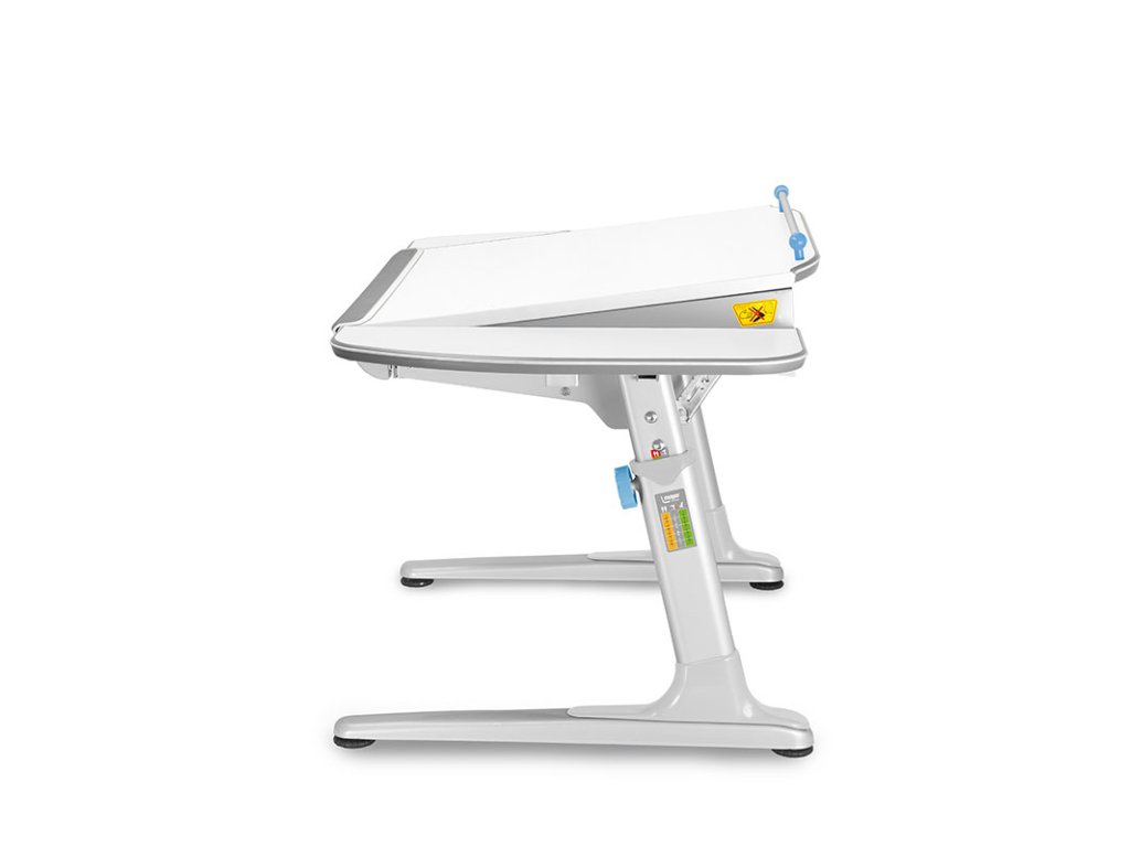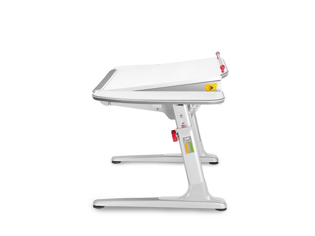 - Podporuje zdravé psaní a kreslení: středová část pracovní desky je výklopná (ovládání madlem), takže si dítě vždy nastaví ideální úhel pro psaní, čtení nebo malování. Postranní vodorovné plochy zůstávají rovné – perfektní na sklenici s pitím, pastelky či sešit.