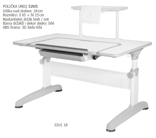 - Polička UNIQ s držákem knih: rozšíří pracovní plochu a zlepší ergonomii čtení – ideální pro učebnice a sešity.