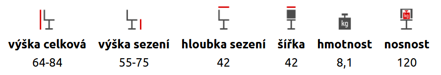 Mechanika | • Standard: ocelová, páčka s plastovým madlem, nosnost 120 kg • RI kruhový ovladač: ocelová, ovládání výšky z libovolné strany, nosnost 120 kg • Zátěžová MAX: ocelová, páčka ocelová, nosnost 150 kg |