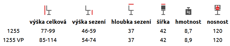 - Celková výška židle: 77–99 cm, s pístem VP 85-114 cm