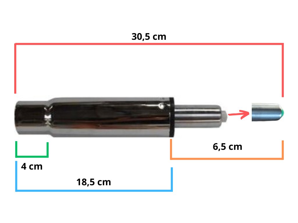 - Kompatibilita pro křesla: Rozměry pístu jsou navržené tak, aby pasoval do většiny křeslových křížů a mechanik. Stačí ověřit níže uvedené míry.
