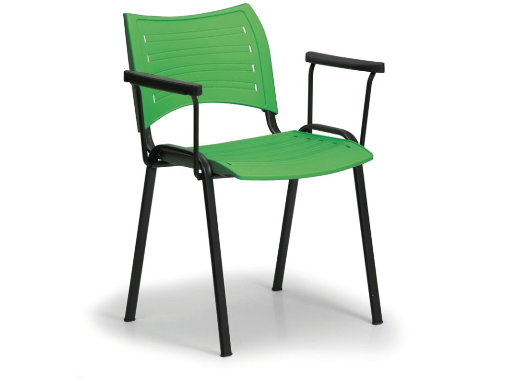 Plastová židle SMART - černé nohy s područkami, zelená