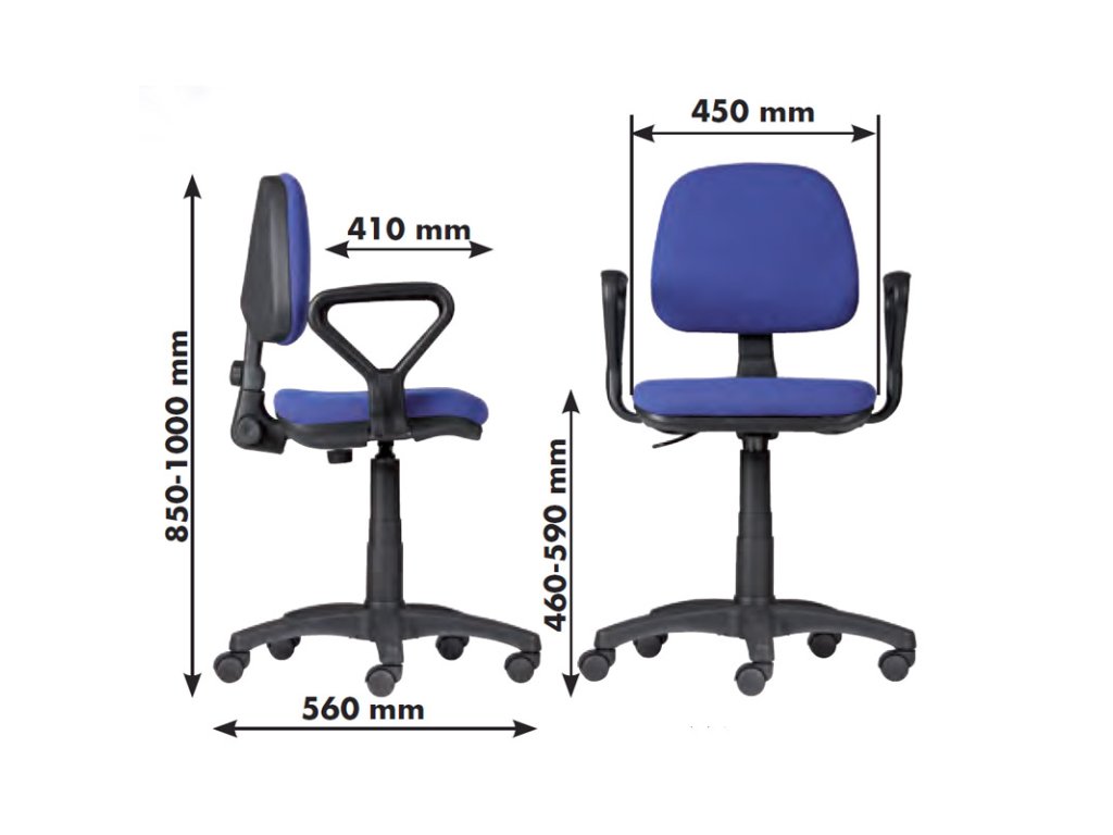 Prostředí, kde je upřednostňovaná dodatečná podpora pro ruce, je tato varianta dokonalou volbou. Pevné plastové područky nabízejí úlevu pro ramena a krční páteř, což přispívá k pohodlí při celodenní práci u stolu. Židle je ideální pro kancelářské prostředí a jemnou montáž. Výškové nastavení sedáku je totožné s verzí bez područek, tedy 46-59 cm, a nabízí stejný ergonomický komfort díky kvalitnímu čalounění. Standardně je vybavena kolečky pro měkké podlahy s možností výměny za kluzáky. K dispozici je v barevných variantách: černá, modrá, červená a šedá.