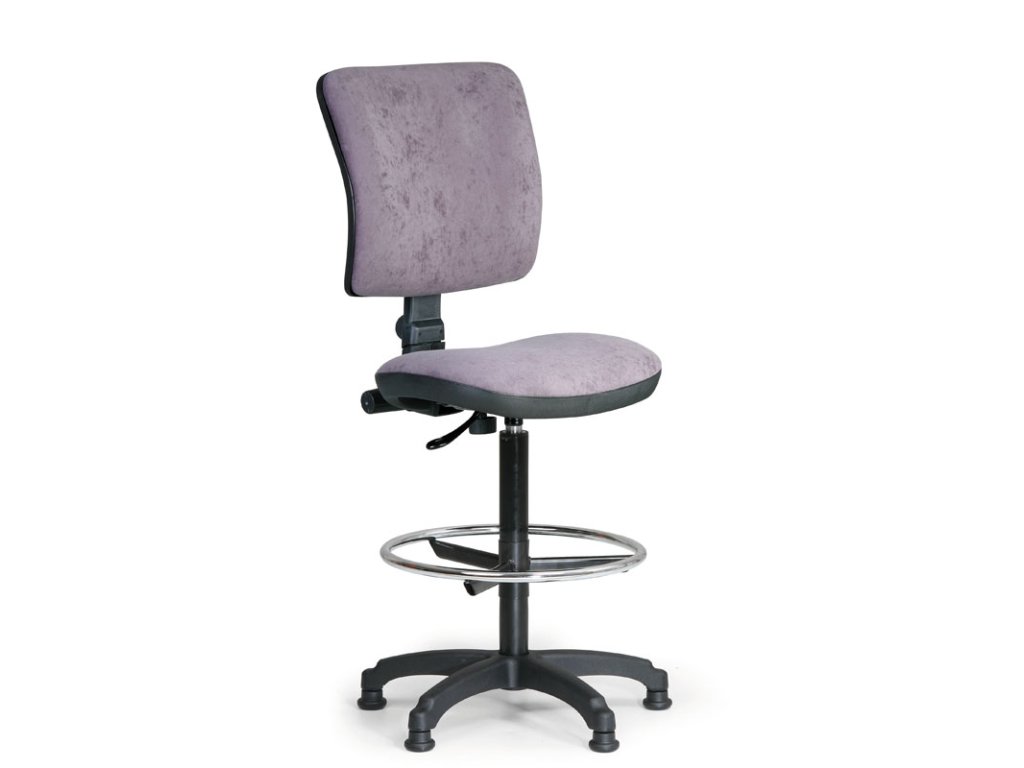 Tato varianta je specifická svou zvýšenou konstrukcí, která se hodí pro pracoviště s vyššími pracovními deskami, jako jsou laboratoře, recepce a pokladny. Je vybavena opěrným kruhem, který poskytuje pohodlí pro nohy, což je nezbytné při práci ve zvýšené poloze. Výška sedáku u této varianty dosahuje 66-79 cm, což zajišťuje flexibilitu pro různé výškové úrovně. Kluzáky namísto koleček nabízejí maximální stabilitu, což ji činí ideální pro stacionární pracovní pozice. Tato varianta je také dostupná s područkami, které zvyšují komfort uživatele. Barevné varianty této židle jsou modrá, šedá, černá a červená.