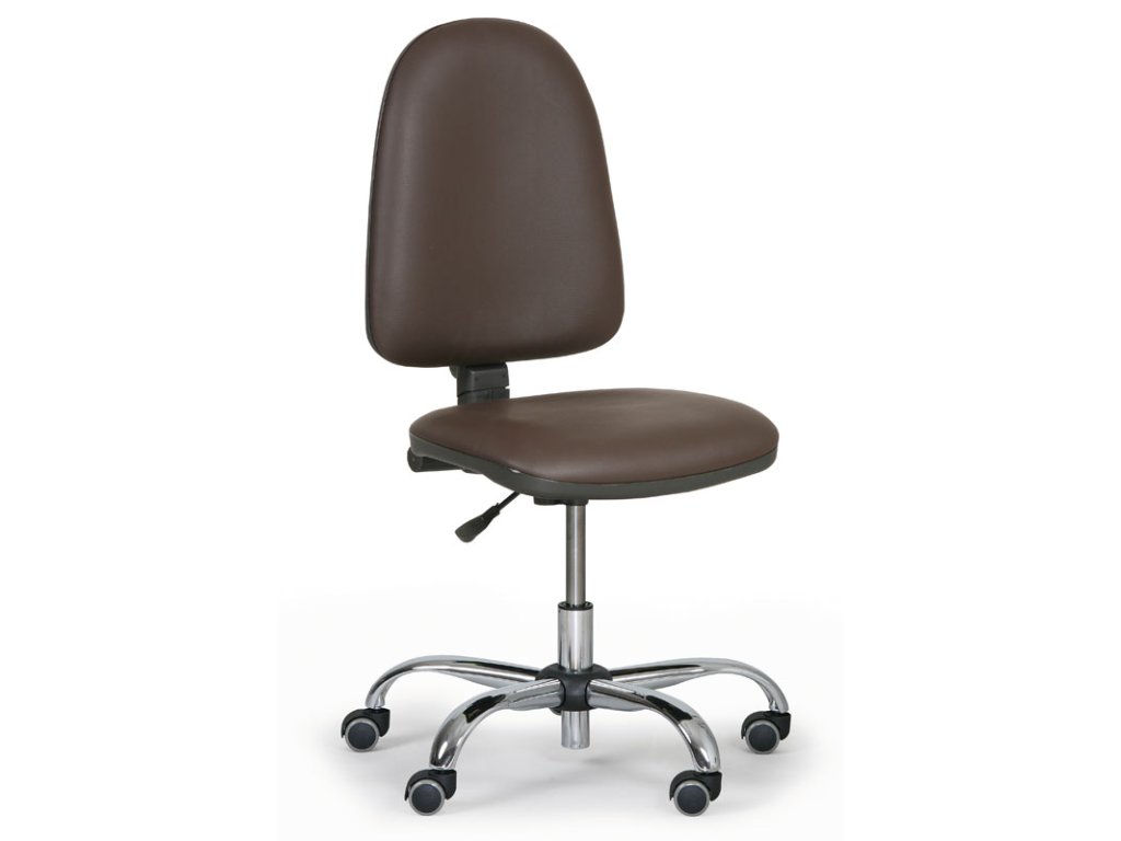 Pracovní židle Torino je navržena pro náročné pracovní prostředí, jako jsou průmyslové provozy a montážní haly, ale skvěle poslouží i v běžné kanceláři. Všechny varianty jsou vybaveny pístem pro plynulé výškové nastavení a opěrákem čalouněným spolu se sedákem do odolné a snadno udržovatelné eko kůže. Nosnost každého modelu činí 110 kg a jsou dostupné ve třech atraktivních barevných provedeních – hnědá, šedá a zelená.