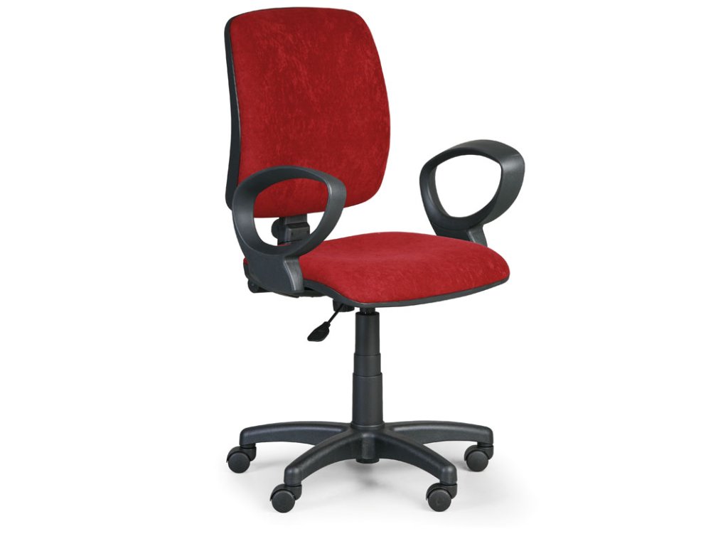 Pracovní židle do průmyslových oblastí, výškové nastavení, pevné područky, sedák i opěrák čalouněny látkou, nosnost 120 kg, výběr ze 4 barev