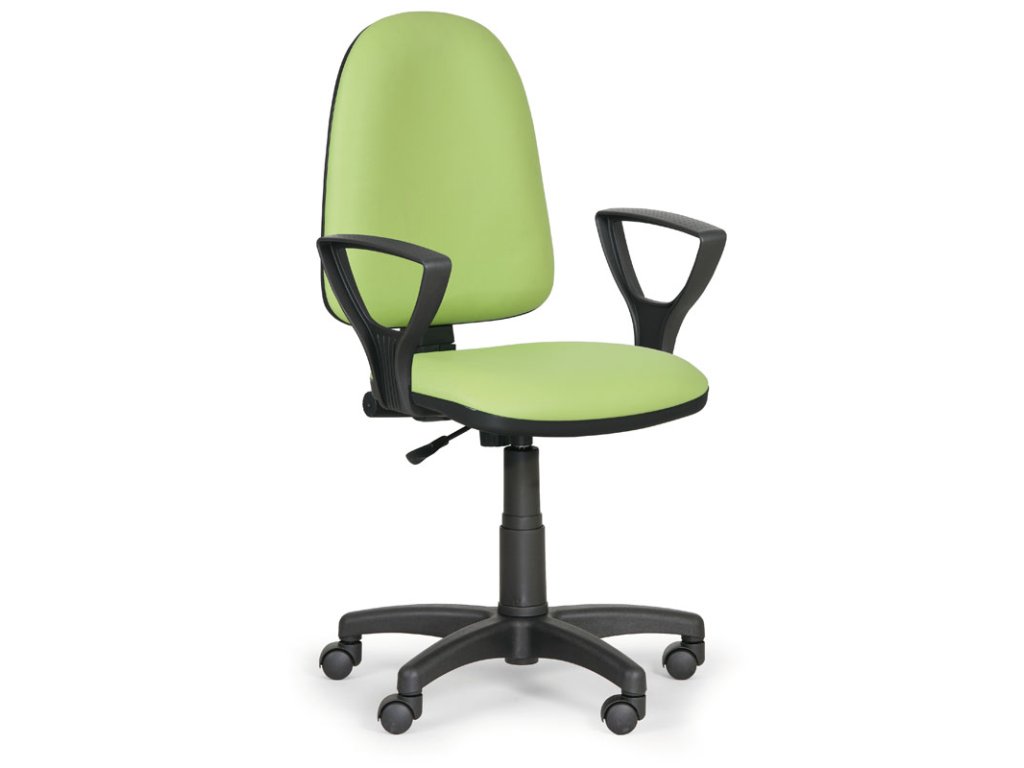 Pracovní židle Torino je navržena pro náročné pracovní prostředí, jako jsou průmyslové provozy a montážní haly, ale skvěle poslouží i v běžné kanceláři. Všechny varianty jsou vybaveny pístem pro plynulé výškové nastavení a opěrákem čalouněným spolu se sedákem do odolné a snadno udržovatelné eko kůže. Nosnost každého modelu činí 110 kg a jsou dostupné ve třech atraktivních barevných provedeních – hnědá, šedá a zelená.