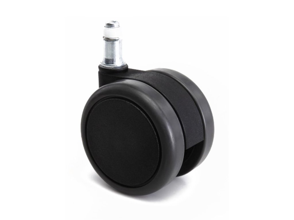 Univerzální 65 mm kolečka s pogumovaným povrchem, průměr čepu 11 mm, která zajišťují plynulý a tichý pohyb na všech typech podlah bez rizika poškrábání. Díky své široké kompatibilitě a elegantní černé barvě jsou ideální náhradou pro jakoukoliv židli či křeslo. Vynikají odolností a dlouhou životností. Eliminují riziko poškození podlahy.